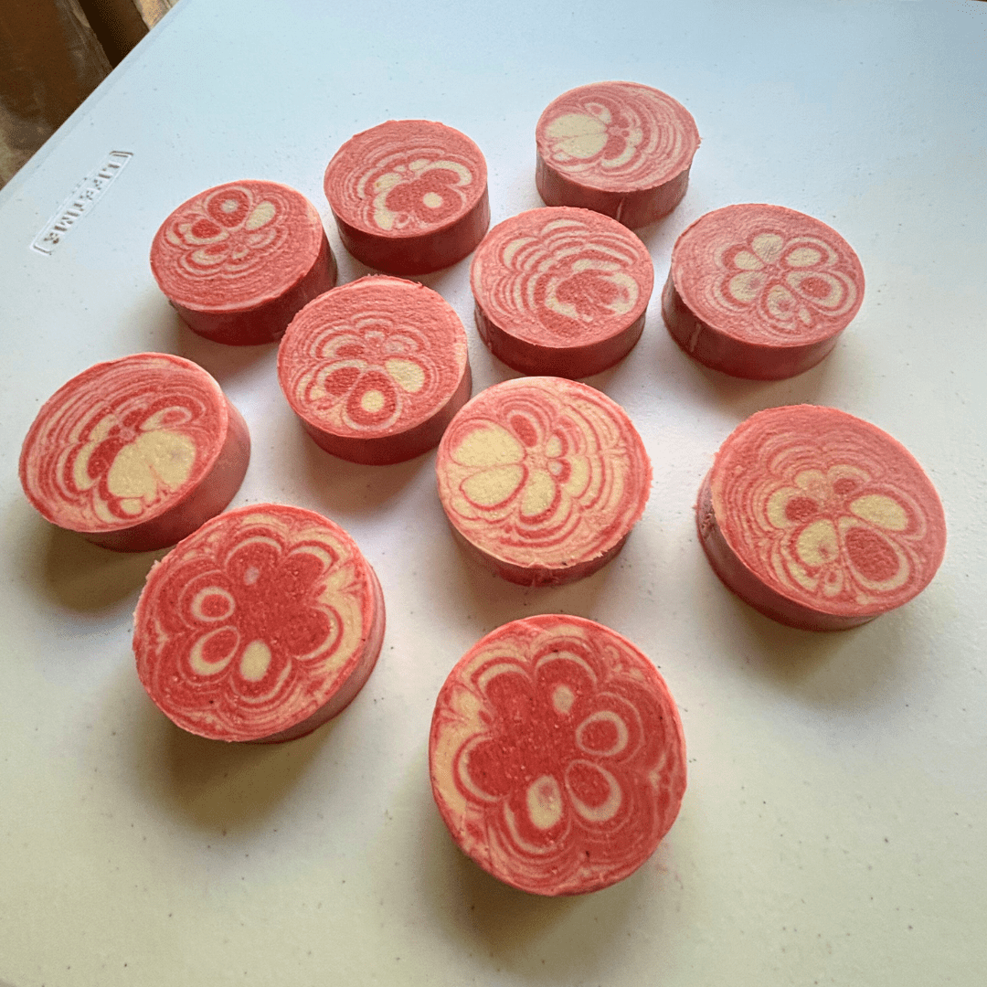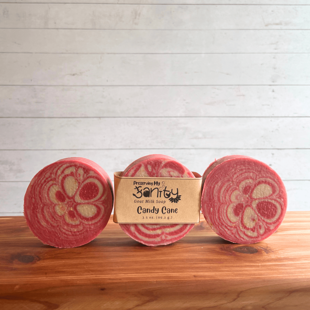Handmade in small batches in my Minnesota kitchen, this Candy Cane soap contains Olive Oil, Locally Sourced Minnesota Goat’s Milk, Unrefined Organic Coconut Oil, RSPO Certified Sustainable Palm Oil, Food-Grade Sodium Hydroxide, Castor Oil, Fragrance Oil (Paraben & Phthalate Free), Sunflower Oil, Mica.