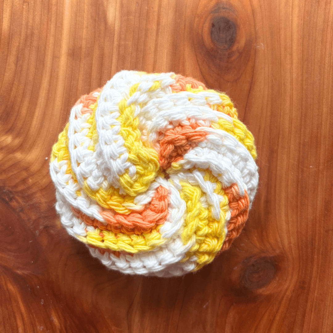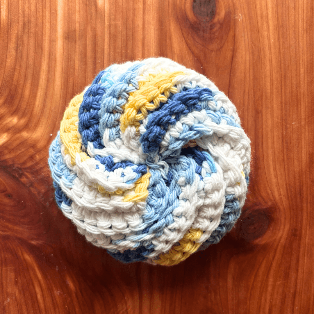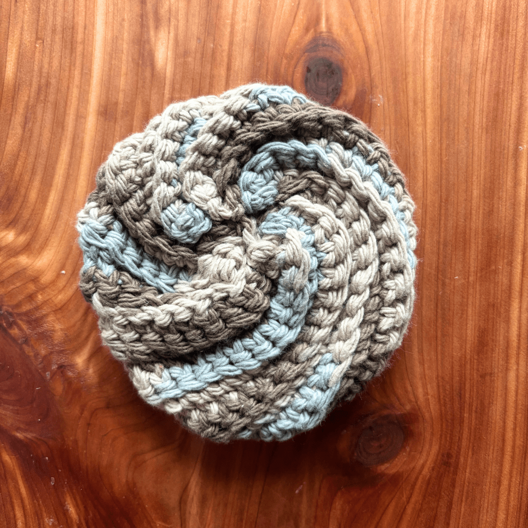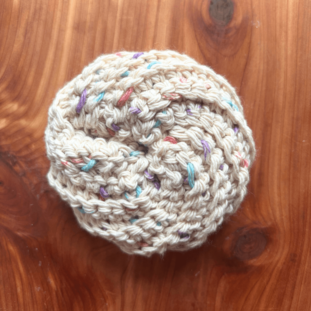 These crocheted face scrubbies are made with 100% cotton yarn and are currently available in these variegated colors: