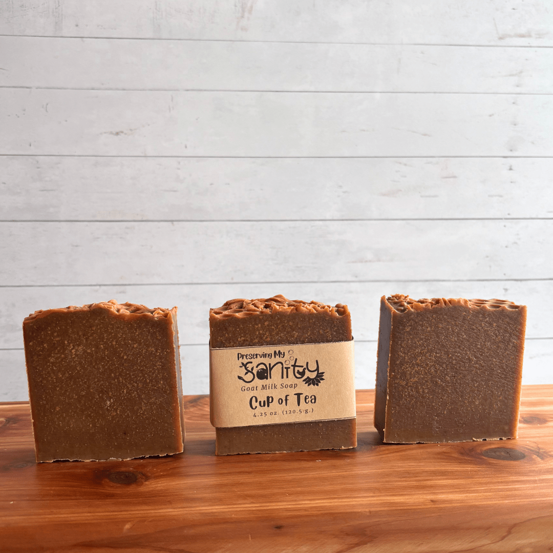 Handmade in small batches in my Minnesota kitchen, this Cup of Tea soap contains: Olive Oil Infused with Dried Chamomile Flowers & Tea, Locally Sourced Minnesota Goat Milk, Unrefined Organic Coconut Oil, RSPO Certified Sustainable Palm Oil, Food-Grade Sodium Hydroxide, Castor Oil, Fragrance Oil (Paraben & Phthalate Free), Sunflower Oil, Locally Sourced Raw Honey, Turmeric, Ginger Essential Oil, Mica.