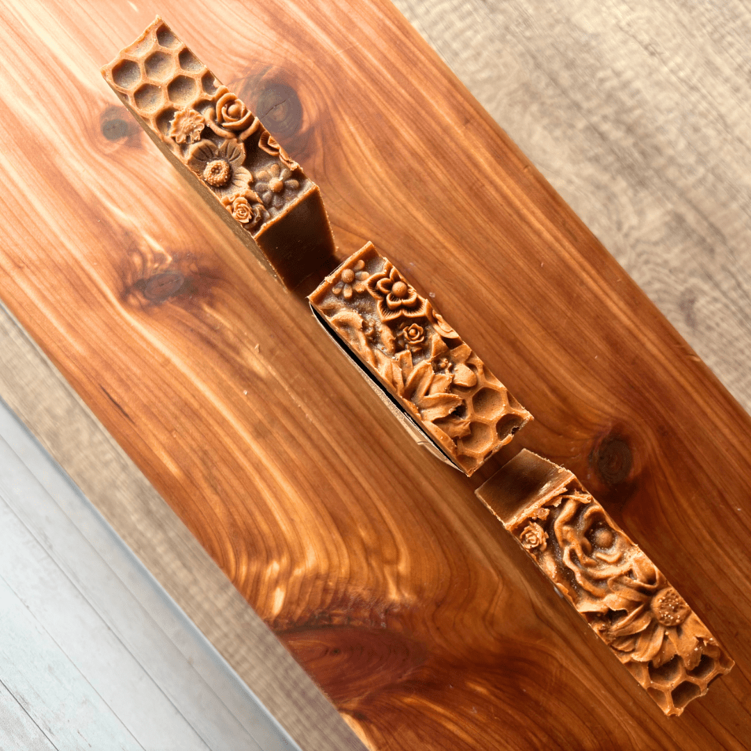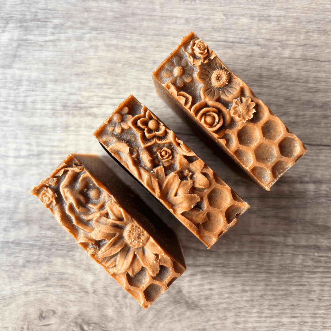 The fragrance used in this soap is a blend of citrus and honey fragrance oils and ginger essential oil. Notes featured include orange, lemon, honey, ginger, violet, clover, cinnamon, musk, berry, and vanilla.