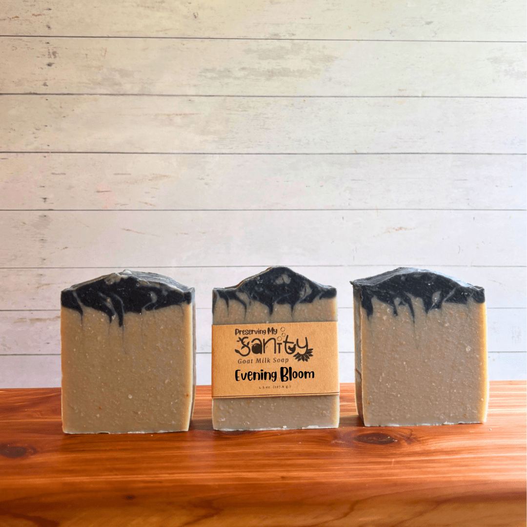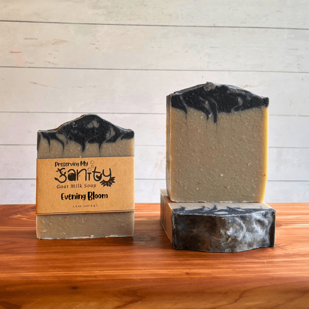 Handmade in small batches in my Minnesota kitchen, this Evening Bloom soap contains Olive Oil, Locally Sourced Minnesota Goat’s Milk, Unrefined Organic Coconut Oil, RSPO Certified Sustainable Palm Oil, Food-Grade Sodium Hydroxide, Castor Oil, Fragrance Oil (Paraben & Phthalate Free), Sunflower Oil, Mica, Activated Charcoal.