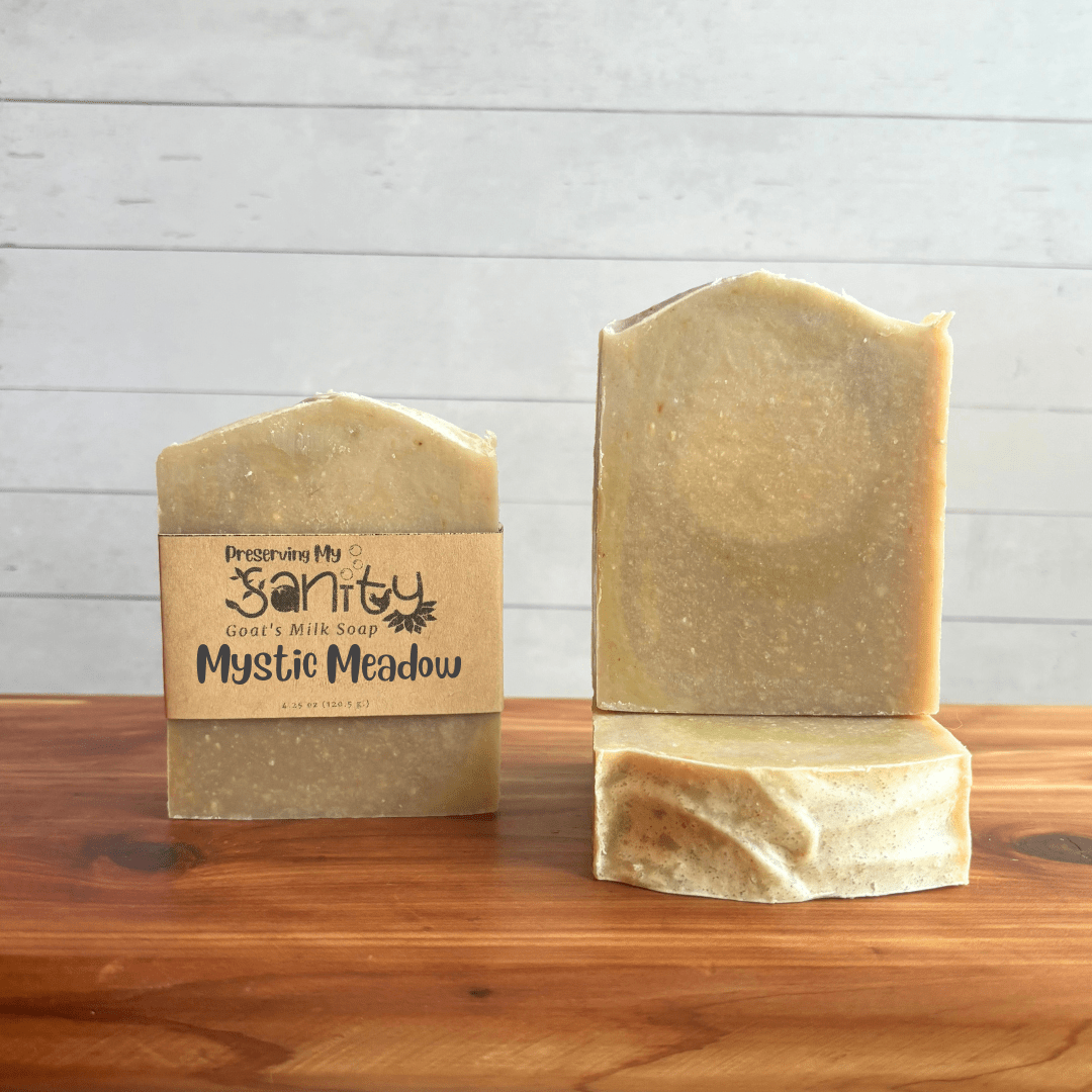 Handmade in small batches in my Minnesota kitchen, this Mystic Meadow essential oil soap contains: Olive Oil, Locally Sourced Minnesota Goat’s Milk, Unrefined Organic Coconut Oil, RSPO Certified Sustainable Palm Oil, Food-Grade Sodium Hydroxide, Castor Oil, Essential Oils of Lavender & Patchouli, Distilled Water, Sunflower Oil, Brazilian Purple Clay, Madder Root Powder, Alkanet Root Powder.