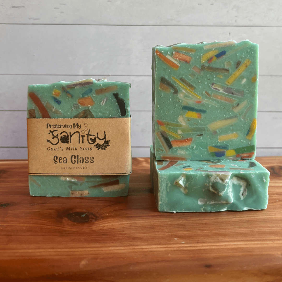 Handmade in small batches in my Minnesota kitchen, this Sea Glass soap is a confetti soap made with a variety of soap scraps and ends from various other projects. Because of this, you will see the ingredient list is larger – but you can still identify and pronounce all of them! Ingredients include Olive Oil, Locally Sourced Minnesota Goat’s Milk, Unrefined Organic Coconut Oil, RSPO Certified Sustainable Palm Oil, Food-Grade Sodium Hydroxide, Fragrance Oil (Paraben & Phthalate Free), Sunflower Oil, Mica, Pumic Powder, Walnut Shell Powder, Mixed Soap Scraps that may also contain Castor Oil, Avocado Oil, Sweet Almond Oil, Essential Oil, Oxide, Activated Charcoal, Turmeric, Rhubarb Root Powder, Clay, Poppy Seeds, Sea Salt, Coconut Husk Powder, Colloidal Oatmeal.)