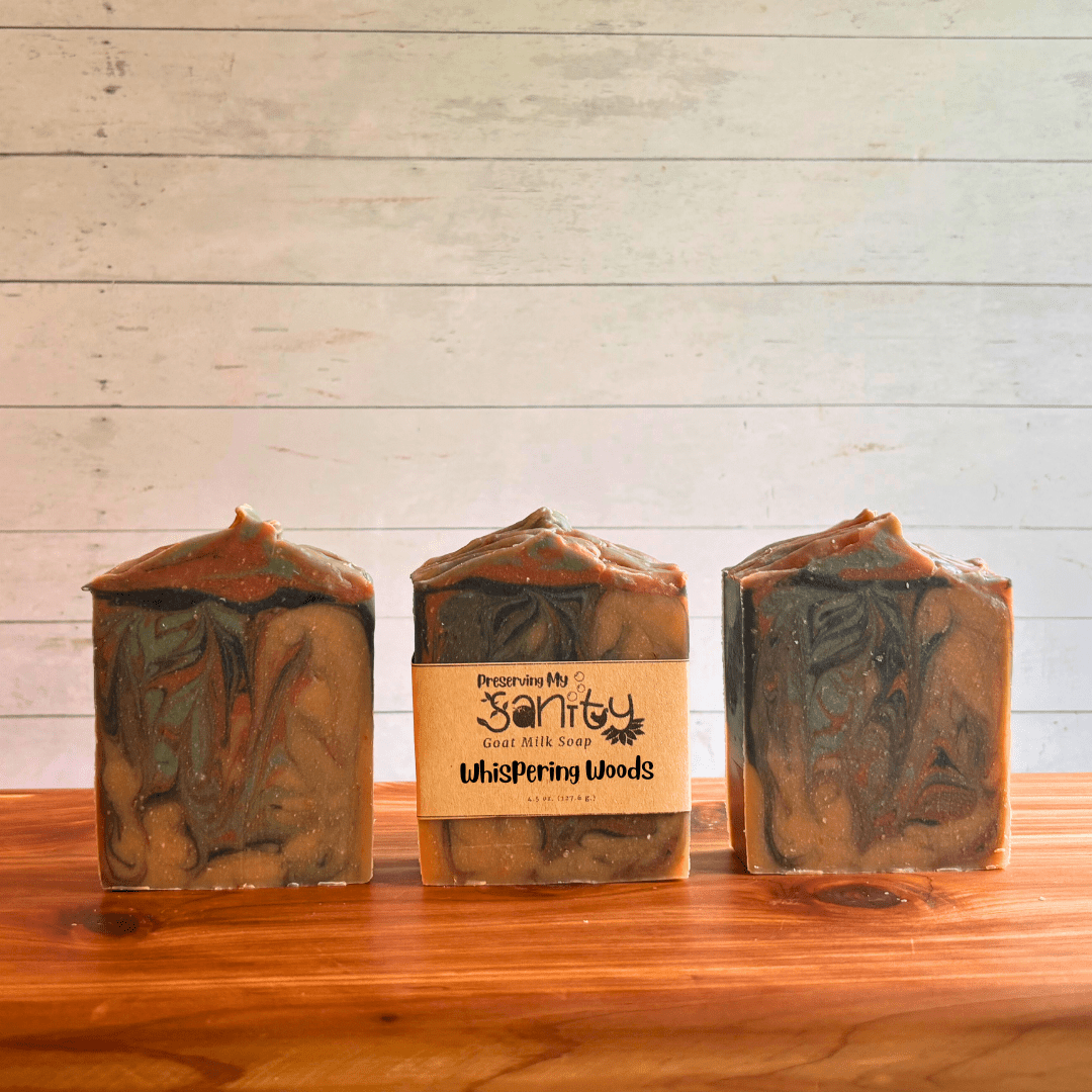 Handmade in small batches in my Minnesota kitchen, this Whispering Woods soap contains Olive Oil, Locally Sourced Minnesota Goat’s Milk, Unrefined Organic Coconut Oil, RSPO Certified Sustainable Palm Oil, Food-Grade Sodium Hydroxide, Castor Oil, Fragrance Oil (Paraben & Phthalate Free), Sunflower Oil, Mica, Activated Charcoal.